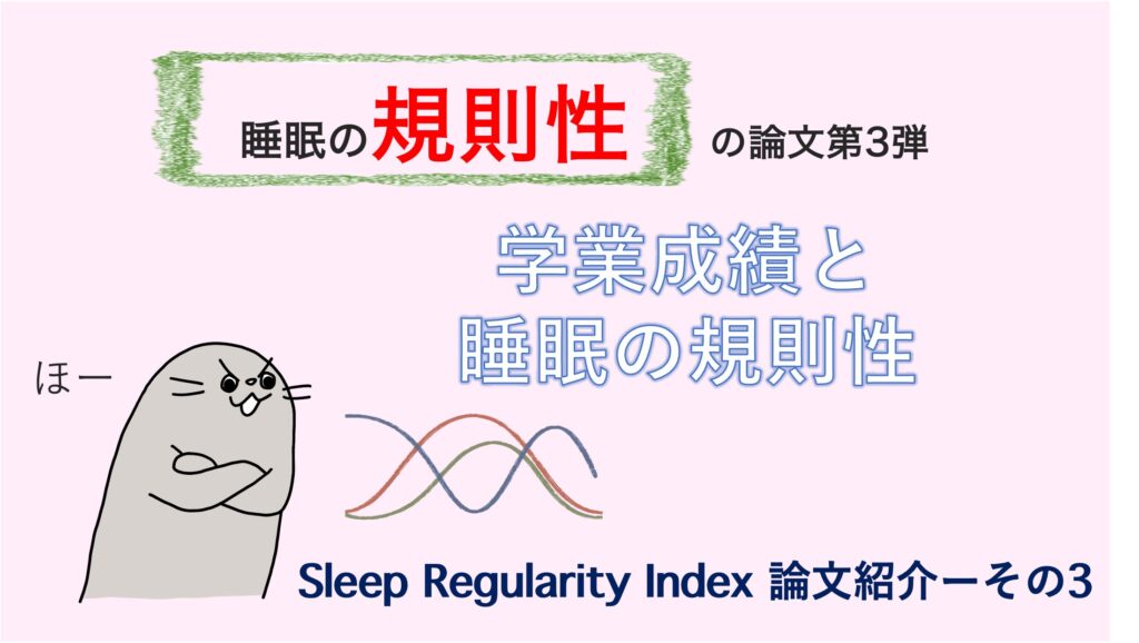 第3弾目にして初めて、睡眠規則性指数「SRI」が考案され使用された最初の研究をご紹介します。2017年に発表された論文で大学生を対象に、規則・不規則睡眠群の学業成績… -